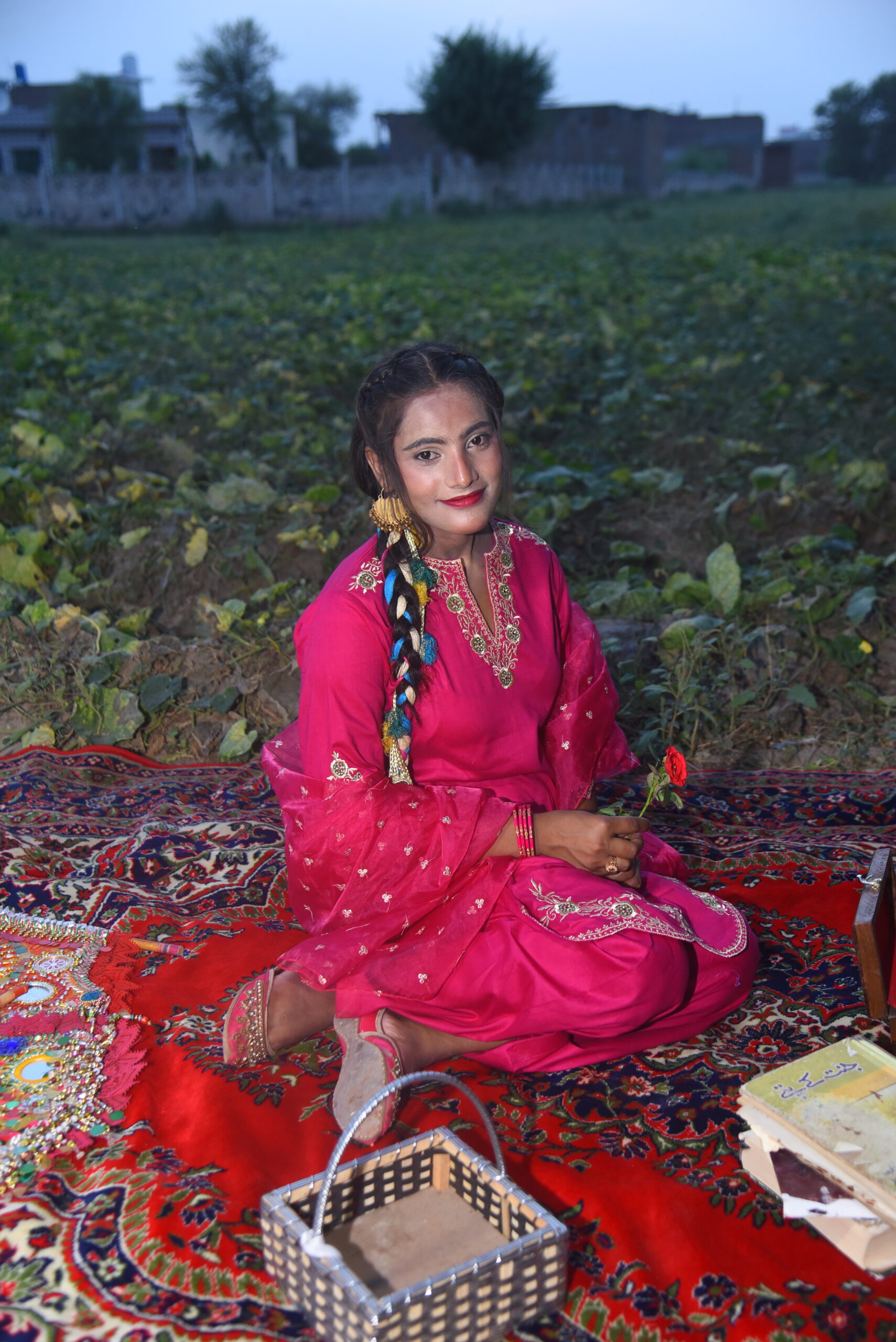 Step into tradition with Pankhri, a stunning three-piece women’s ensemble in shocking pink, enriched with delicate tilla embroidery that speaks of elegance and cultural pride.